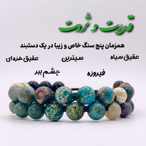 جنس سنگ: ترکیبی (چشم ببر، سیترین، عقیق سیاه، عقیق خزهای، فیروزه آفریقایی)