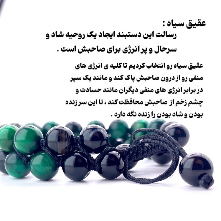 - نام محصول: دستبند سنگ چشم ببر سبز و عقیق سیاه