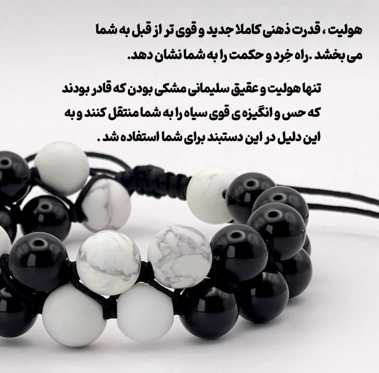 در این دستبند، ما دو قطب متضاد اما مکمل را کنار هم چیدهایم: سفیدیِ هولیت و سیاهیِ عقیق. تضادی که تعادل را به روح شما باز میگرداند.