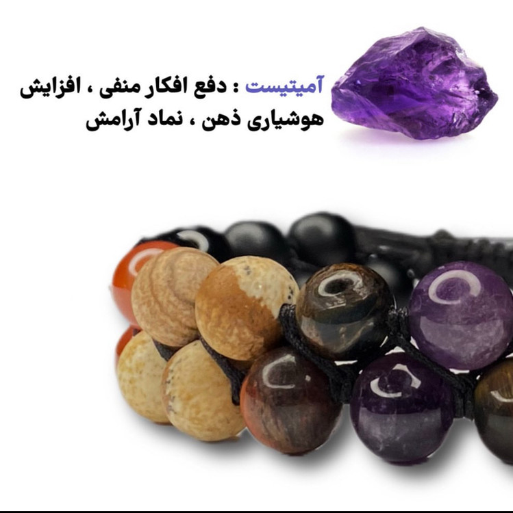 آمتیست: این سنگ به عنوان نمادی از آرامش و تعادل شناخته میشود و به بهبود تمرکز و تقویت سیستم ایمنی کمک میکند.
