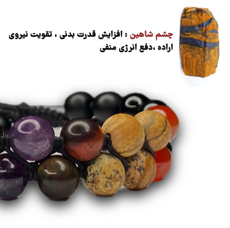 یکی از مهمترین ویژگیهای این دستبند، استفاده از چندین سنگ قدرتمند است که هر کدام خواص ویژهای دارند: