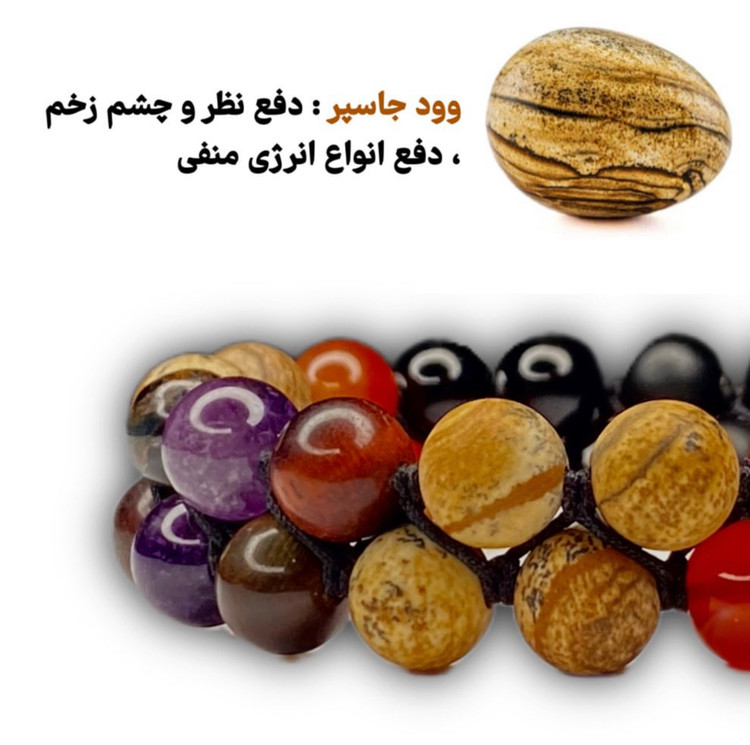 🟡 وود جاسپر: این سنگ به عنوان سپری قوی در برابر چشمزخم و انرژیهای منفی شناخته میشود.