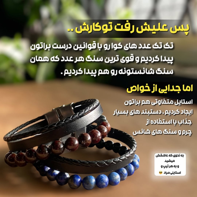 مرسی که هستی دوست عزیزم محاسبه ی عدد شانس و پیدا کردن سنگ واقعی اون عدد کوا کار راحتی نیست و قوانین خودش رو داره اما تا علیش رو داری چه غمی داره ، ما برات حسابش می کنیم و سنگش رو هم به شکل یک دستبند بسیار زیبا از چرم برات ساختیم که جدایی از خواص زیباییش چشمگیر همه باشه . ارسال به تمام نقاط علیش چیزی مانند یک زندگی جدید